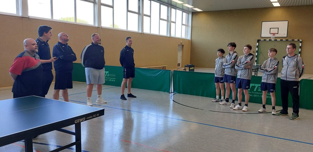 Die 1. Herrenmannschaft war zu Gast beim Tabellenführer TTC Adensen-Hallerburg, gegen die unser Team bisher die einzige Niederlage (3:7) einstecken musste. Nur mit einem klaren 10:0-Sieg wäre noch eine Chance auf Platz 1 drin gewesen. Aufgrund der bisherigen Souveränität der Adenser war damit jedoch nicht zu rechnen. Unser Team wollte den Gastgeber zumindest ärgern, was letztendlich auch gelang. Fast wäre es sogar ein Sieg geworden, aber die 5:3 Führung wurde von den Gastgebern leider noch egalisiert. –> siehe Spielbericht