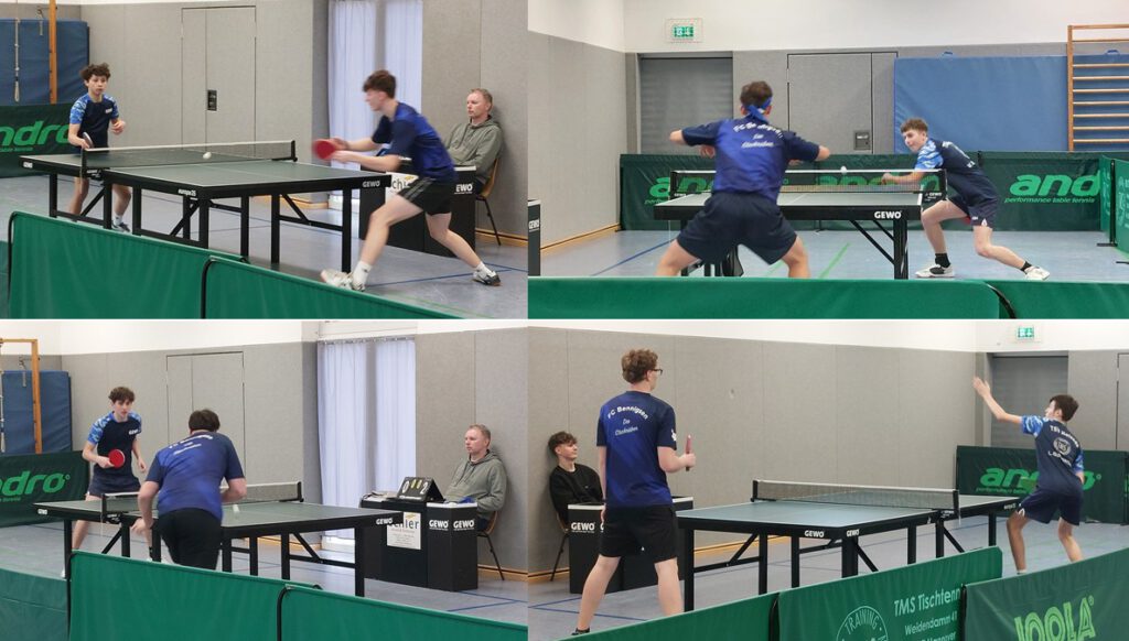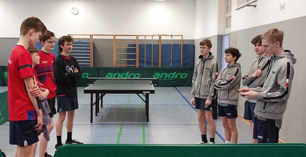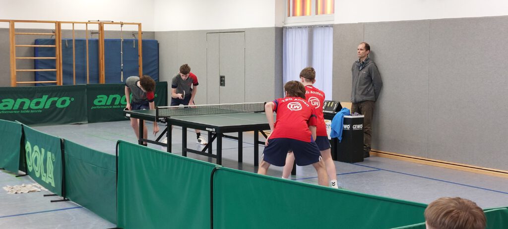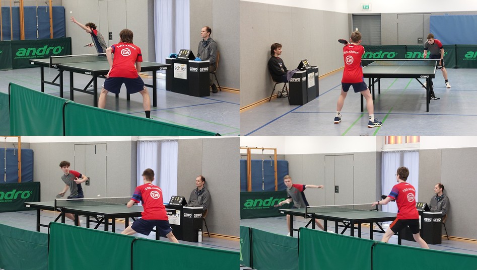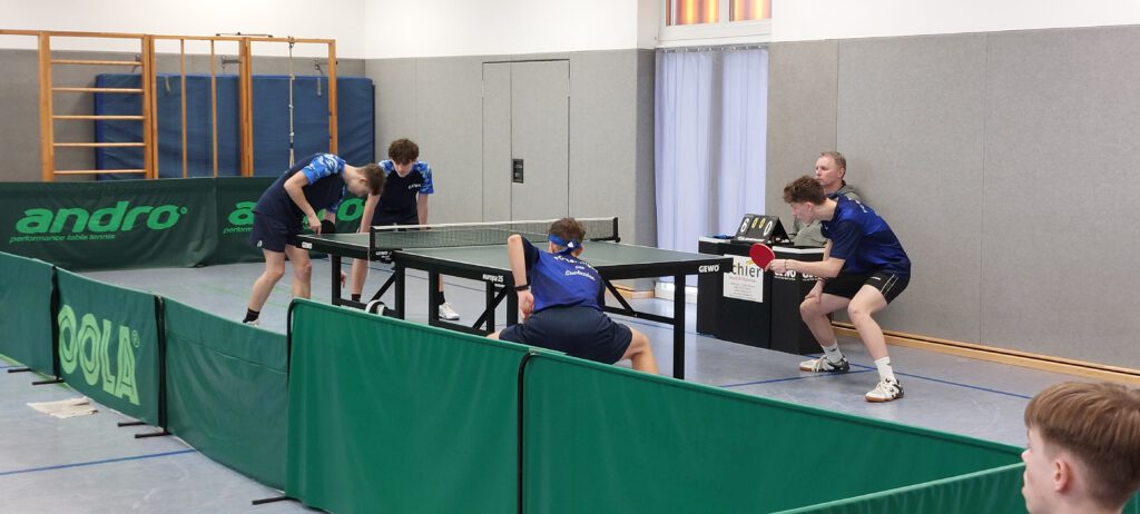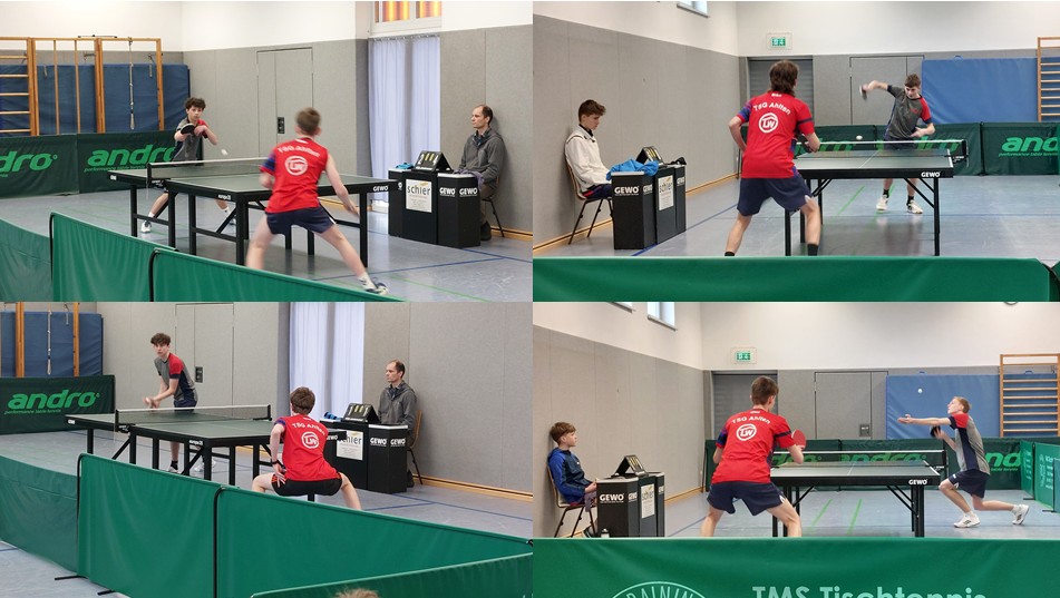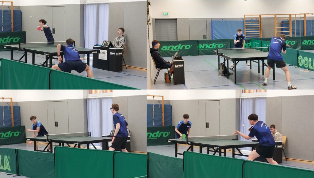 Linus bewies in Satz 1 und 2 gegen Dix Nervenstärke und gewann jeweils 12:10. Dann war plötzlich die Spannung weg, die er aber im Entscheidungssatz wiederfand. Danach punkteten Niklas gegen Gandyra, Marcel gegen Reese (natürlich wieder in 5 Sätzen) und Moje gegen Dix. Linus konnte sich da im letzten Spiel gegen Hrassnigg leider nicht einreihen. Nach Satzausgleich und knapper Niederlage im 3. Satz ging plötzlich nichts mehr.