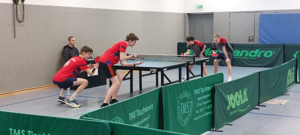 Das Hinspiel endete unerwartet mit Remis. Diesmal sollte an eigenen Tischen ein Sieg herausspringen und so trat die Mannschaft auch auf. Nachdem Niklas Bahn/Julian Ehrenteit ihr Doppel gegen Vorwergk/Sauer sicher nach Hause brachte, hatten Moje Uhlhorn/Marcel Stogniew gegen Remberg/Dupke jedoch ordentlich zu kämpfen. Vier der fünf Sätze gingen dabei in die Verlängerung. Den Schlusspunkt setzten dann die Heiseder mit 13:11.
