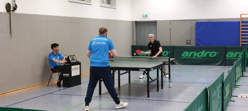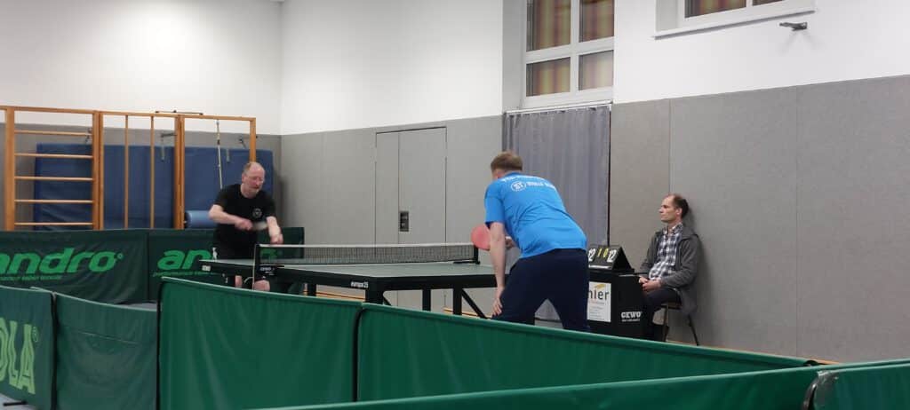Bei den Doppeln konnte nur Sigmund “Sigi” und Helmut punkten. Im oberen Paarkreuz hatte Sigi gegen Andreas Schimke keine Probleme. Helmut hatte jedoch mit Rouven Schmidt einen Gegner, der ihn immer wieder vor Probleme stellte. Er schaffte es zwar noch in den Entscheidungssatz, den musste er dann aber mit 5:11 abgeben.