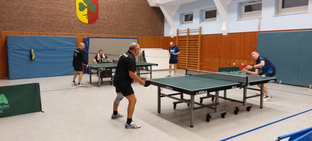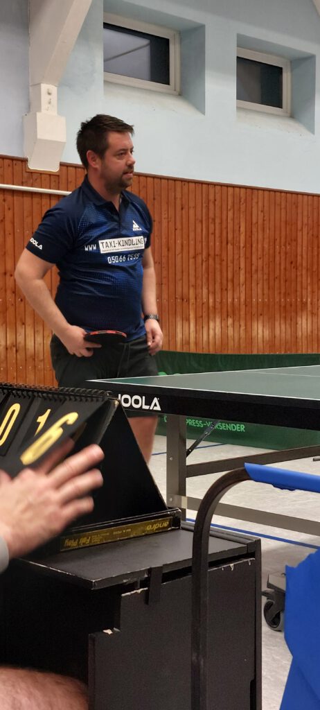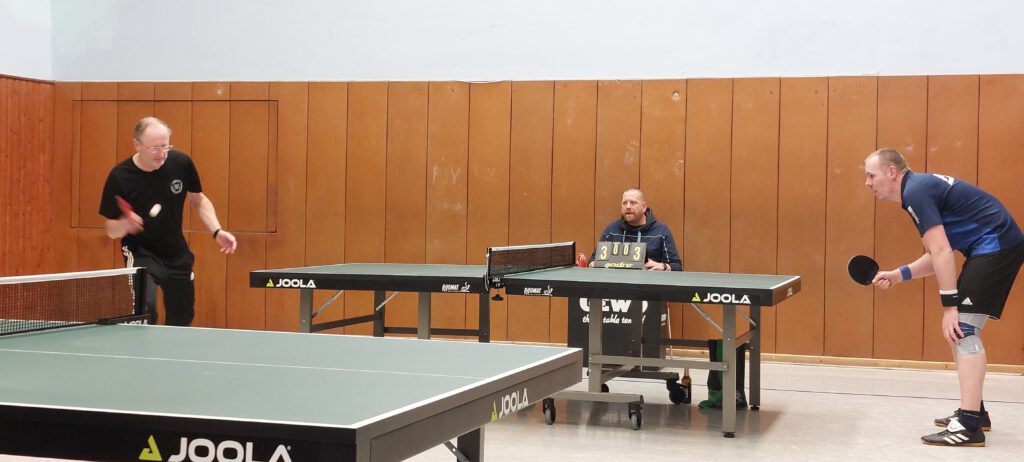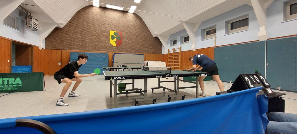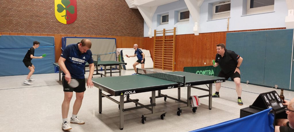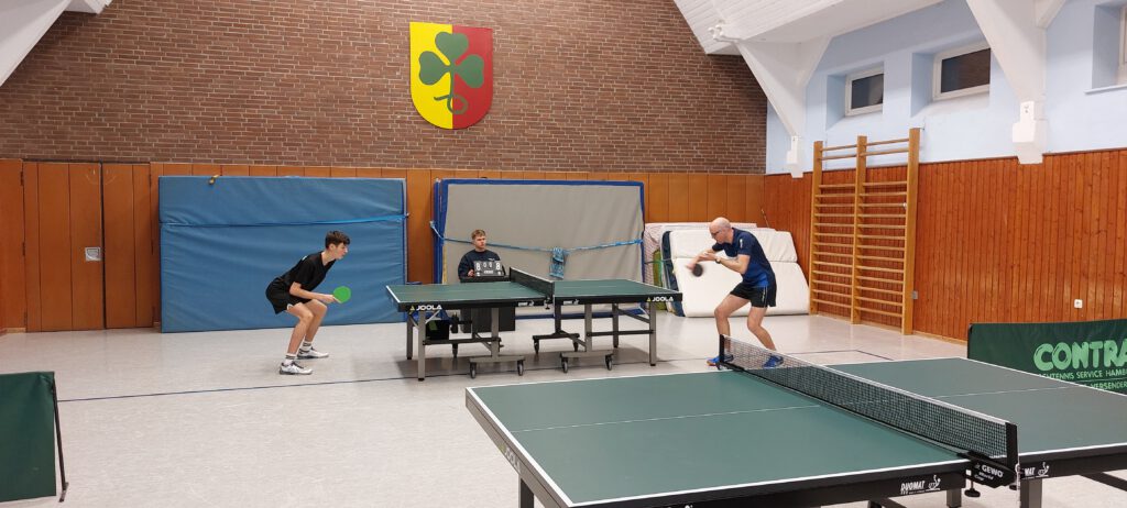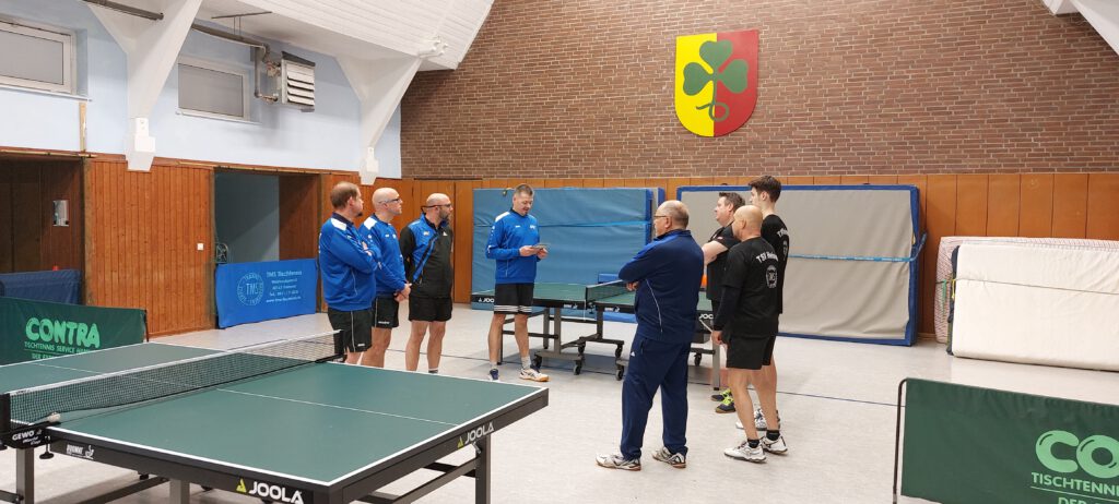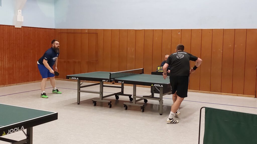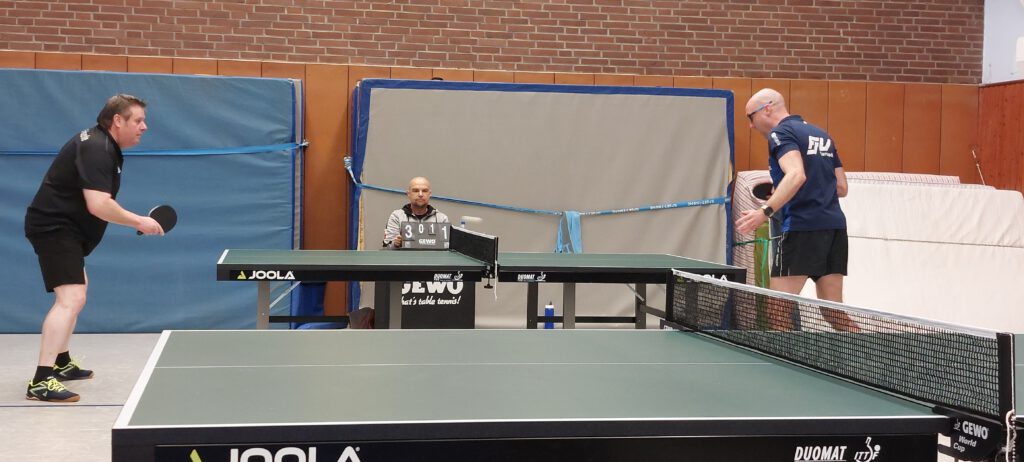 In der 1. Kreisklasse traten beide Kontrahenden in Bestbesetzung an. Unsere Doppelpaarungen legten furios los und so konnten Stephan Wiecha/Linus Bormann gegen Torsten Hermann/Marc Barkowski und Uwe Karczmarczyk/Andreas Paulsen gegen Frank Barkowski/Macus Dey gleich einen 2 Punkte-Vorsprung herausarbeiten. Nachdem Uwe sein Spiel gegen Torsten in knappen 5 Sätzen abgab, konnten Stephan und Linus auf 4:1 erhöhen. Auch Andreas legte gut los. Er verlor zwar nach 2 klaren Satzgewinnen den 3. Satz ebenso klar. In Satz 4 führte er dann wieder sehr konfortabel, konnte jedoch den Deckel gegen Marcus nicht zumachen, der sich dadurch mehr und mehr gestärkt fühlte. Der Entscheidungssatz ging dann ebenfalls knapp an ihn. Stephan musste gegen Torsten ebenfalls über 5 Sätze gehen, da Torsten recht gut mit seiner Noppe zurechtkam. Im Schlusssatz zeigte sich Stephan mental stabil und sorgte für den 5. Punkt. Das Spiel von Uwe gegen Frank stand ebenfalls auf Messers Schneide. Im Entscheidungssatz hatte Uwe den Siegpunkt fast auf dem Schläger, verpasste diesen aber denkbar knapp. Da Andreas und Linus ihre Spiele jeweils in 4 Sätzen abgaben, trennten sich beide Teams 5:5. Dadurch wurde der erhoffte Führungswechsel leider verpasst. >> Spielbericht