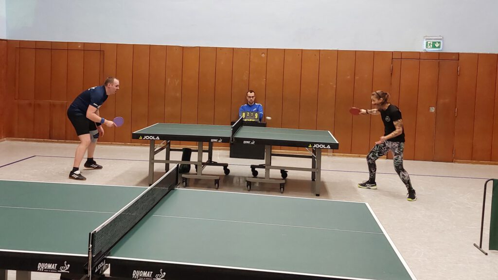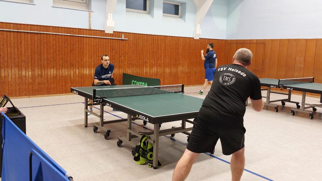 In der 2. Kreisklasse boten beide Teams ebenfalls ihre stärksten Spieler auf, wobei in unser Mannschaft Peter Bergel verletzungsbedingt durch Siegmund (Sigi) Kolodziej gut vertreten wurde. Die Sarstedter waren bisher nur mit einem Unentschieden behaftet. Unser Team mit drei Unentschieden. Bettina Bendix/Sebastian (Basti) Mader konnten zwar den ersten Satz nach hohem Rückstand gewinnen, fanden gegen Kai Rössler/Tim von Wrycz-Reckowsky aber danach nicht wirklich ins Spiel. Andreas Bormann / Siegmund Kolodziej machten es gegen Sören Werner / Stefan Janz besser und sorgten für den Ausgleich. Ein harter Kampf stand Sebastian gegen Kai bevor. Kai, der durch seine teils ungewöhnliche Art des Abwehrspiels bekannt ist, brachte viele Bälle per Ballonabwehr zurück, was saubere Rückschläge erheblich erschwerte. So kämpfte sicht Basti über die volle Distanz, wobei 4 Sätze in die Verlängerung gingen. Im Schlusssatz setzte er dann mit 12:10 den hart erkämpften Schlusspunkt. Nach einer klaren Niederlage von Andreas gegen Tim lief es für unser Team. Es folgten Siege von Sigi gegen Sören, Bettina gegen Stefan und Andreas gegen Kai (alle über 5 Sätze). Nachdem Basti gegen Tim klar das Nachsehen hatte, sorgte Bettina gegen Sören ungefährdet für den entscheidenden 6. Punkt. Die Niederlage von Sigi gegen Stefan in der letzten Partie tat dem starken Auftritt unserer Mannschaft keinen Abbruch. Durch diesen Sieg stehen beide Team mit jeweils 3 Minuspunkten gleich in der Tabelle. >> Spielbericht