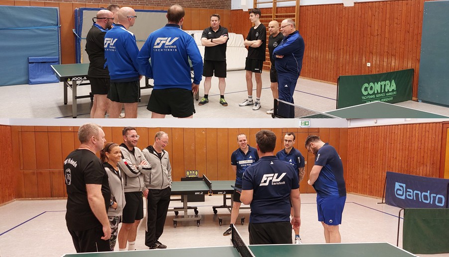 In der 2. Kreisklasse boten beide Teams ebenfalls ihre stärksten Spieler auf, wobei in unser Mannschaft Peter Bergel verletzungsbedingt durch Siegmund (Sigi) Kolodziej gut vertreten wurde. Die Sarstedter waren bisher nur mit einem Unentschieden behaftet. Unser Team mit drei Unentschieden. Bettina Bendix/Sebastian (Basti) Mader konnten zwar den ersten Satz nach hohem Rückstand gewinnen, fanden gegen Kai Rössler/Tim von Wrycz-Reckowsky aber danach nicht wirklich ins Spiel. Andreas Bormann / Siegmund Kolodziej machten es gegen Sören Werner / Stefan Janz besser und sorgten für den Ausgleich. Ein harter Kampf stand Sebastian gegen Kai bevor. Kai, der durch seine teils ungewöhnliche Art des Abwehrspiels bekannt ist, brachte viele Bälle per Ballonabwehr zurück, was saubere Rückschläge erheblich erschwerte. So kämpfte sicht Basti über die volle Distanz, wobei 4 Sätze in die Verlängerung gingen. Im Schlusssatz setzte er dann mit 12:10 den hart erkämpften Schlusspunkt. Nach einer klaren Niederlage von Andreas gegen Tim lief es für unser Team. Es folgten Siege von Sigi gegen Sören, Bettina gegen Stefan und Andreas gegen Kai (alle über 5 Sätze). Nachdem Basti gegen Tim klar das Nachsehen hatte, sorgte Bettina gegen Sören ungefährdet für den entscheidenden 6. Punkt. Die Niederlage von Sigi gegen Stefan in der letzten Partie tat dem starken Auftritt unserer Mannschaft keinen Abbruch. Durch diesen Sieg stehen beide Team mit jeweils 3 Minuspunkten gleich in der Tabelle. >> Spielbericht