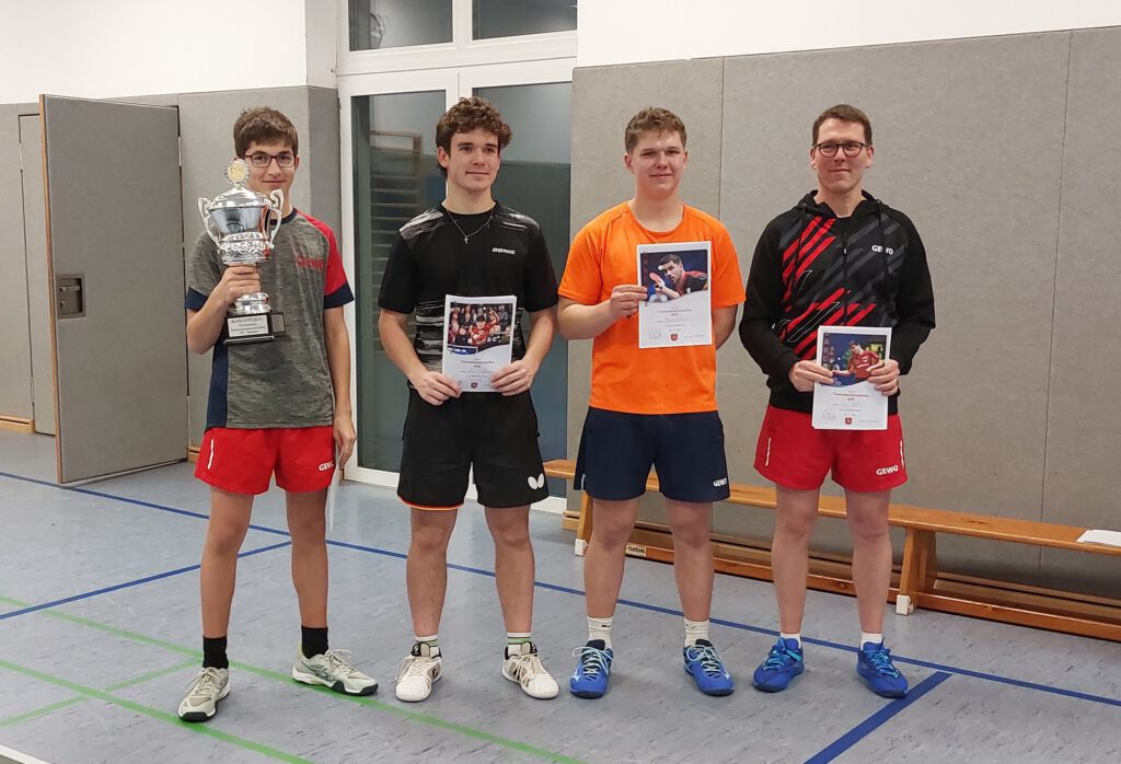 KO-Phase: Gegen die starken Jugendspieler des TSV konnten sich im Achtelfinale nur noch Lars und Jonne behaupten. Im Viertelfinale kam es zum ersten Favoritensterben. Benjamin verlor gegen Jonne knapp in 5 Sätzen und Jonah, der nicht annähernd seine Leistungsstärke erreichte, klar gegen Nino. Mit einem klaren 3:0 konnten auch Lars gegen Niklas und Lando gegen Moje die nächste Runde erreichen.