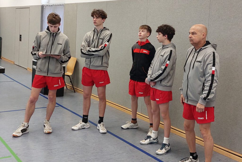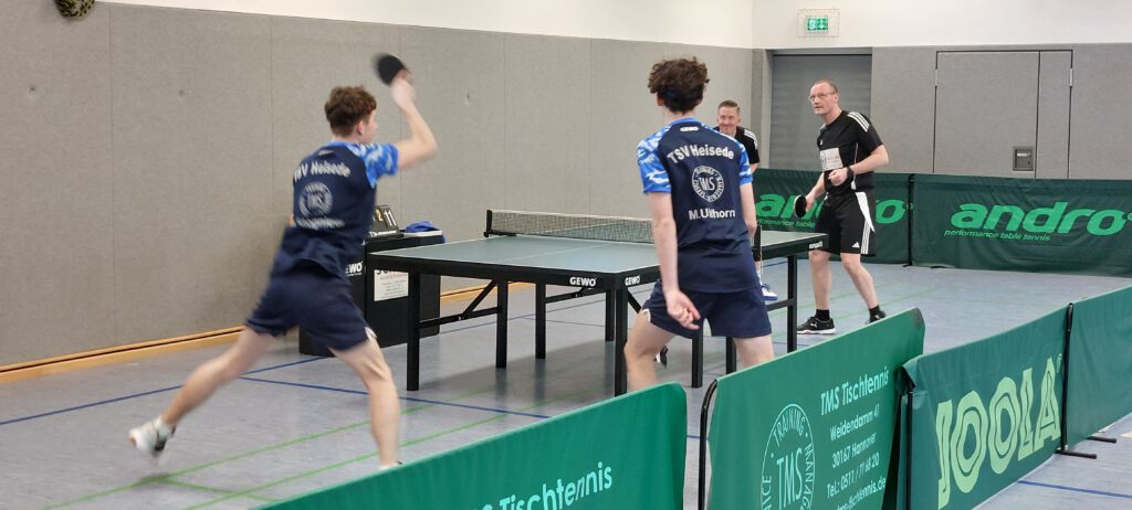 Nach dem knappen 6:4 -Hinspielsieg sollte es diesmal etwas klarer werden. Nachdem Jonah Hebel/Niklas Bahn ihr Doppel gegen Marcin Oziom/ Torben Bünte 3:0 gewann, mussten Marcel Stogniew/Moje Uhlhorn gegen Marcel Speit/Philipp Kaune hingegen eine ebenso klare Niederlage einstecken. In den Einzeln hatten unsere Jungs aber durchweg die Oberhand. Nur Moje musste dabei gegen Marcin und Niklas gegen Philipp in den Entscheidungssatz. Somit wurde es mit 9:1 der erhofft klare Sieg. –> siehe Spielbericht